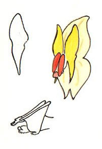 DESCRIPTION: Mini-miniature sized, cool growing epiphyte with suberect, slender ramicauls enveloped completely by to 7, close, microscopically scabrous lepanthiform sheaths and carrying a single, apical, erect, thinly coriaceous, purple veined, ovate, acute, long-acuminate, rounded and contracted below into the petiolate base leaf that blooms in the summer and fall on a slender, very congested, distichous, .72 to .92 [1.5 to 1.7 cm] long including the .4 to .48” [1 to 1.2 cm] long peduncle, successively many flowered, inflorescence arising on the top of the leaf.