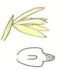 DESCRIPTION: Mini-miniature sized, hot to warm growing epiphyte with minute, compressed pseudobulbs enveloped basally by 2 leaf-bearing sheaths and carrying a single, apical, erect, oblong-lanceolate, obtuse, shortly petiolate base leaves that blooms on an axillary, 1 [2.5 cm] long, single flowered inflorescence arising on an immature growth and enveloped completely by 4, tubular, chartaceous, imbricating sheaths.