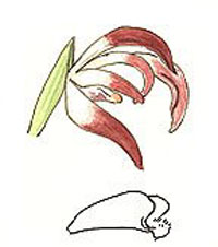 DESCRIPTION: Small to medium sized, hot to cool growing epiphyte or terrestrial with a repent and ascending rhizome carrying compressed, narrowly oblong pseudobulbs almost completely enveloped by imbricate, leafless and leaf bearing sheaths and carrying a single, apical, erect, rigid, coriaceous, oblong-lanceolate, oblong or oblanceolate, acute to almost obtuse, attenuate basally leaf that blooms on axillary, 3.2 [8 cm] long, single flowered inflorescence enveloped by brown-green somewhat inflated bracts.