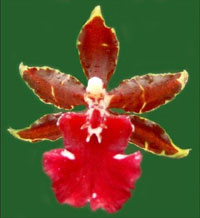Oncostele Dark Ruby is an orchid hybrid originated by Everglades in 2001. It is a cross of Ons. Jungle Cat x Onc. anthocrene.
