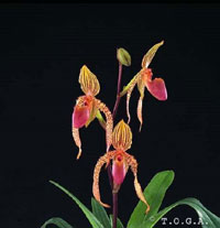 Paphiopedilum Lawless Sandguard is an orchid hybrid originated by Orchid House in 2001. It is a cross of Paph. Vanguard x Paph. sanderianum.