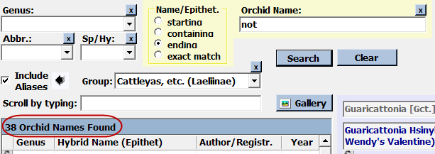 However, if we specify Name ending with... and Group: Cattleyas, we significantly narrow the range of orchids:
