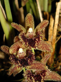 DESCRIPTION: Small sized, cool to cold growing epiphyte with distichous, imbricating, articulated, leaf bearing sheaths and carrying, narrowly lanceolate, midvein keeled, gradually narrowing into the conduplicate base leaves that blooms in the summer and fall on several, lateral, short, single flowered inflorescence.