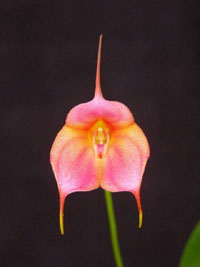 Masdevallia Blushing Belle is an orchid hybrid originated by J & L.Orch. in 1989. It is a cross of Masd. uniflora x Masd. Angel Frost.