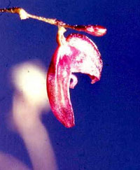 DESCRIPTION: Densely caespitose, mini-miniature sized, warm to cool growing epiphyte with ascending to erect ramicauls enveloped by 1 to 2 sheaths and carrying a single, apical, erect, coriaceous, elliptical to narrowly elliptical to narrowly obovate, subacute to obtuse, cuneat to narrowly cuneate below into the petiolate base leaf that blooms in the fall on an erect to suberect, slender, 1.2 [3 cm] long, loose, racemose, successively few [3 to 8] flowered inflorescence with thin floral bracts.